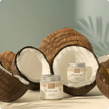 - Scellez l’hydratation avec un lait corps riche en huile de Coco et de Moringa Drouhardii. Appliquez une généreuse noisette de crème matin et soir sur une peau propre et sèche. Son parfum subtilement sucré et délicat vous transportera immédiatement en vacances.