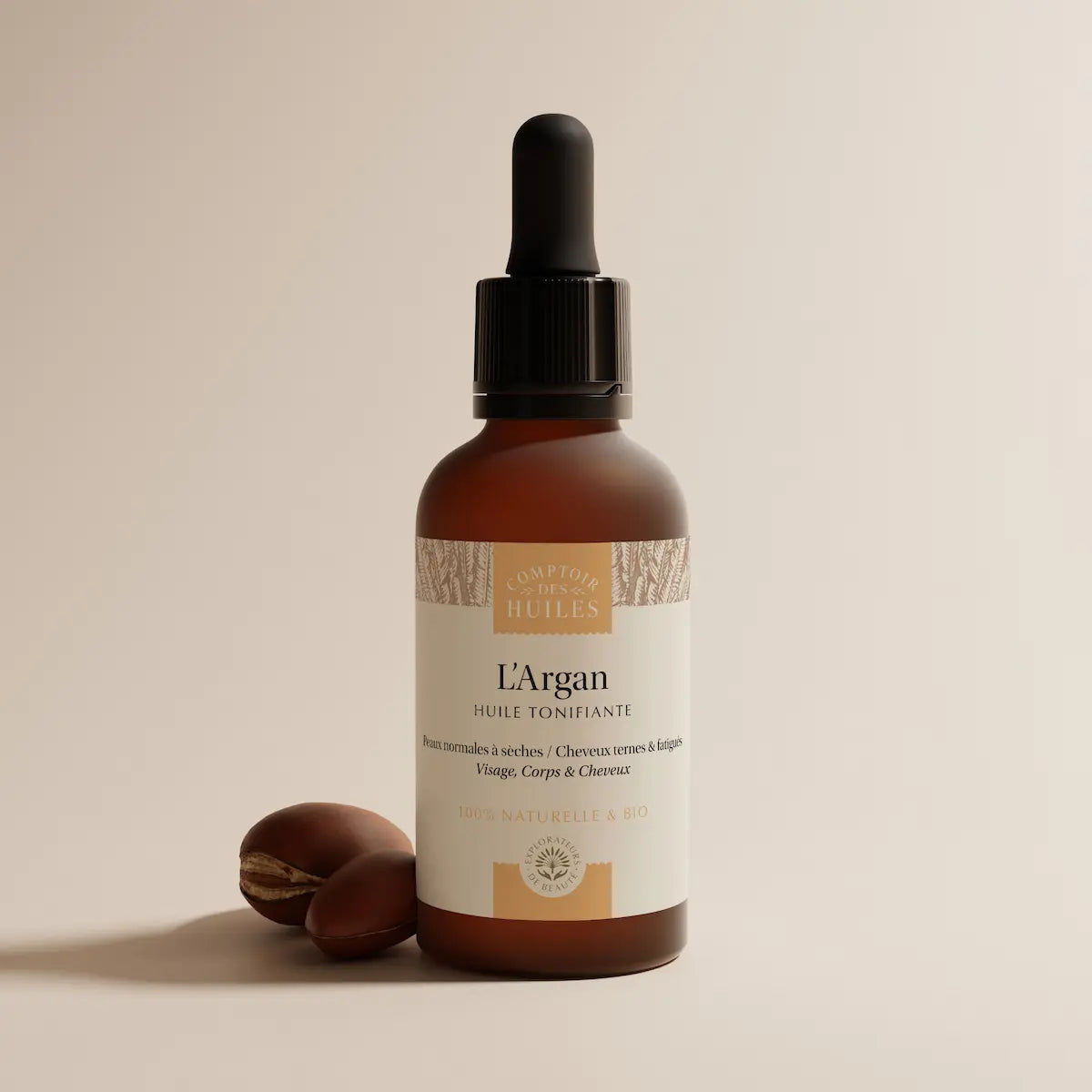L'huile d'Argan est naturellement riche en vitamines, antioxydants et acides gras essentiels qui en font un ingrédient de choix pour les soins de la peau et des cheveux.