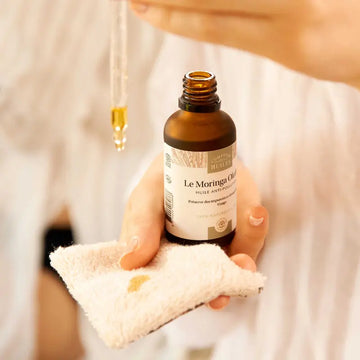 - L’huile de Moringa Oleifera : Naturellement nettoyante et détoxifiante, elle élimine les impuretés, la pollution et les cellules mortes de la peau. Elle aide également à purifier en douceur tout en redonnant éclat et vitalité à votre teint. Grâce à ses propriétés antioxydantes, elle protège votre peau contre le vieillissement et les agressions environnementales.
