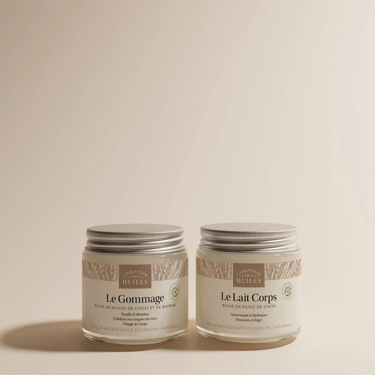 Tragen Sie nach dem Duschen (und dem Peeling) die Comptoir des Huiles Körpermilch auf die gereinigte, trockene Haut auf.
