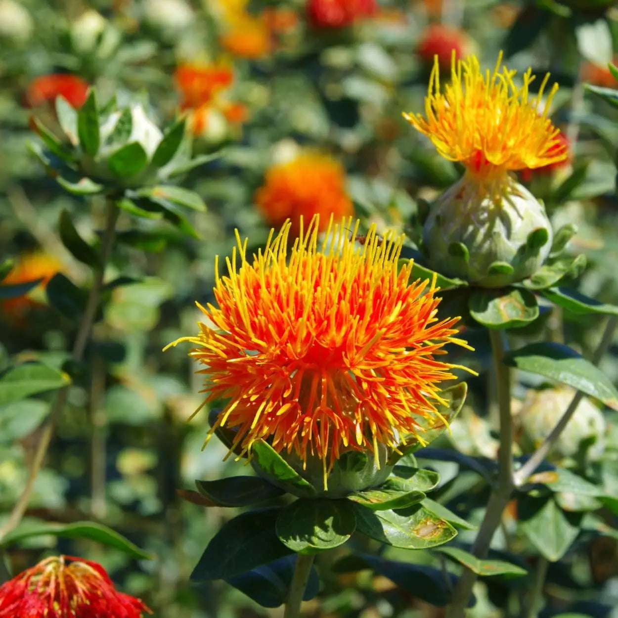 Safflower oil is extracted from the seeds of the Carthamus tinctorius plant, commonly known as safflower or dyer's saffron. Safflower is a thorny annual plant native to arid regions of the Middle East and the Mediterranean basin. Traces of its cultivation date back more than 4,000 years, making it one of the oldest domesticated plants.