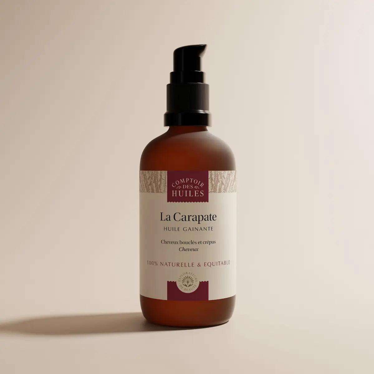 Comptoir des Huiles Carapate Oil is ideal for frizzy , curly and extremely dry hair. Widely used to promote hair growth, it deeply nourishes and prevents the appearance of split ends, Carapate oil has qualities similar to Castor oil. Thanks to the fatty acids it contains, this oil nourishes , protects and coats your hair fiber. Its antibacterial properties cleanse dry or irritated scalps.