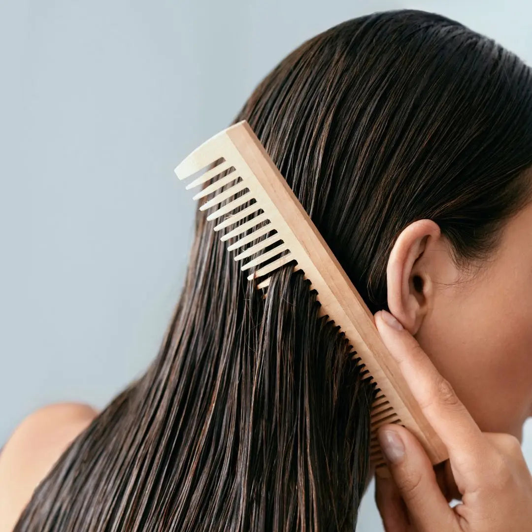 - Un démêlage en douceur : après l’application de l’après-shampoing, utilisez vos doigts ou un peigne à dents larges pour démêler sans casser la fibre capillaire.