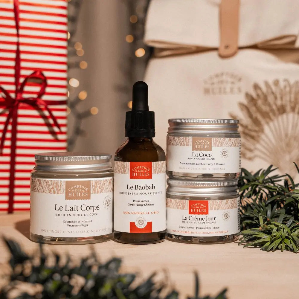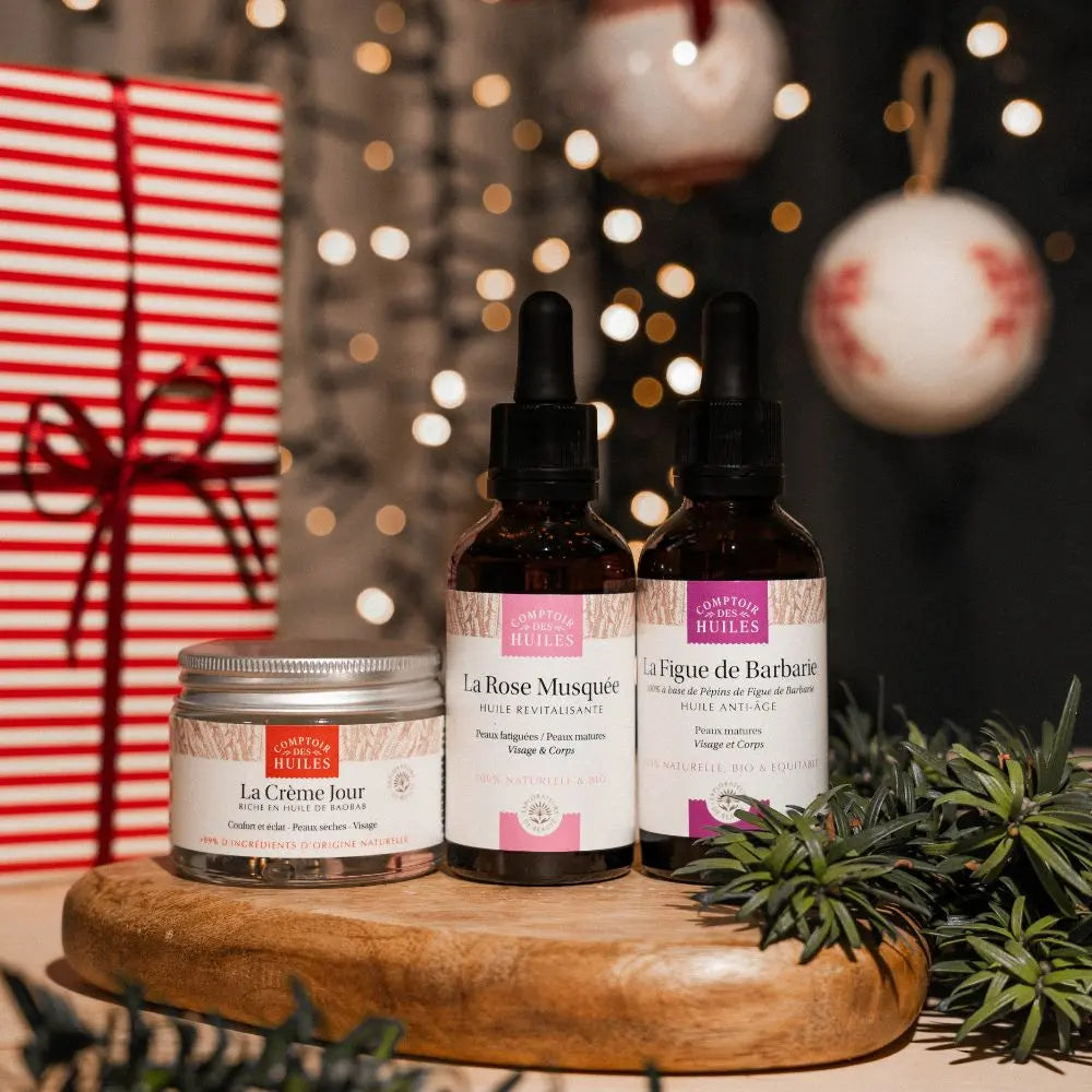 Bienvenue dans la boutique de Noël Comptoir des Huiles : des soins bio et huiles végétales pour le visage et le corps, à offrir ou à s’offrir.