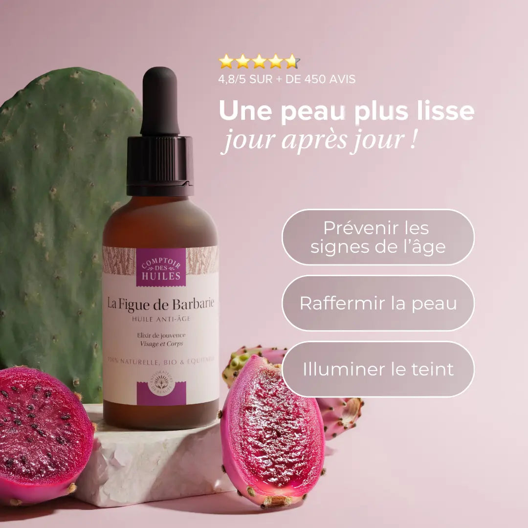 L'huile de figue de barbarie, grâce à sa composition 100 % naturelle, se révèle être un véritable allié contre les rides.