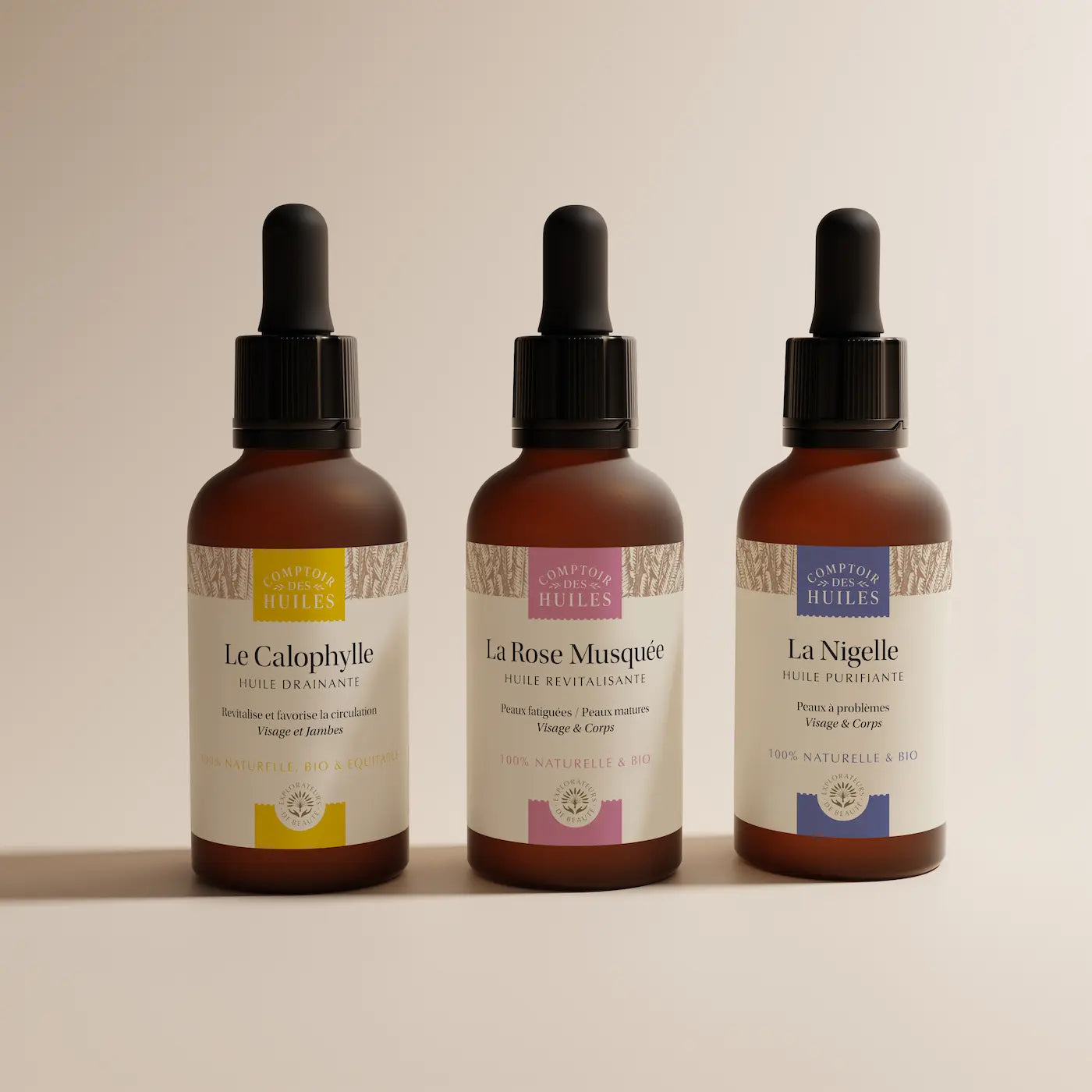 En associant ces trois huiles, la peau retrouve confort et équilibre. Les rougeurs s’estompent progressivement, le teint se réchauffe naturellement et la peau devient plus douce, plus souple et apaisée.